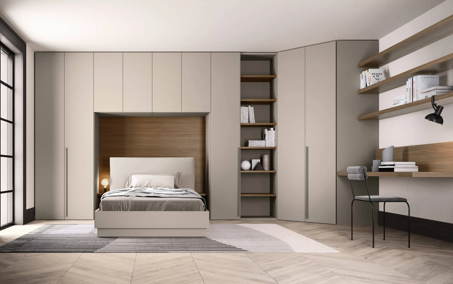 Per progettare alla perfezione una stanza bella e funzionale, scegli le più esclusive soluzioni dei migliori brand, letti, armadi e comò di grande design. Gli Armadi a ponte con ante battenti sono elementi imprescindibili nella zona notte, per renderla ben arredata, pratica e completa di tutto. Contattaci e scopri di più sulla nostra linea di Arredamento Casa: avrai la possibilità di ultimare la zona del riposo usufruendo di una diversificata gamma di contenitori moderni, come l'armadio in melaminico nell'immagine.